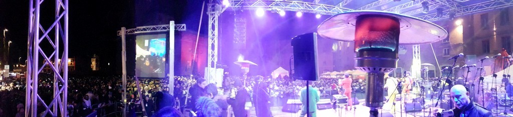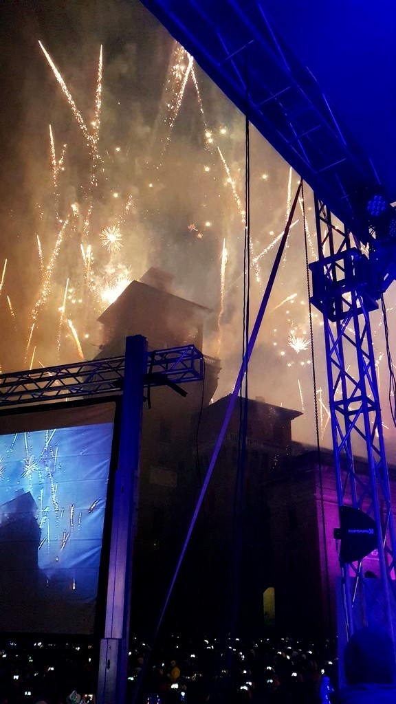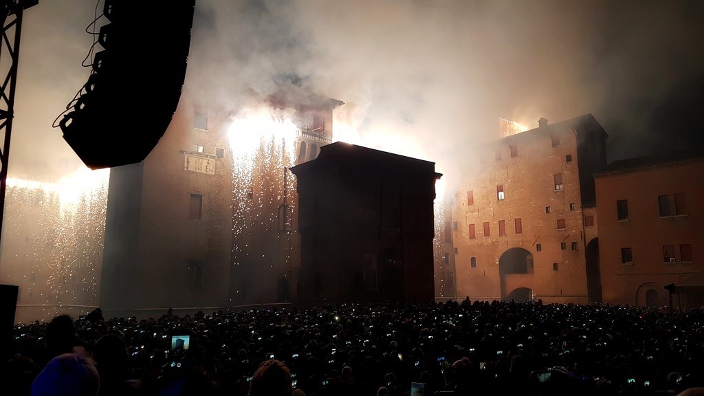 L’evento ha offerto “una sforchettata di felicità” al pubblico che ha gremito entusiasta il Teatro Nuovo di Ferrara. Un sold out con oltre 700 persone che si sono divertite ed emozionate con gli artisti presenti, prima di spostarsi sul palco centrale in Piazza Castello di fronte a 35.000 persone accorse per assistere al famoso “incendio del Castello Estense”.